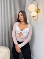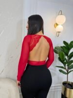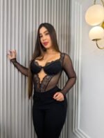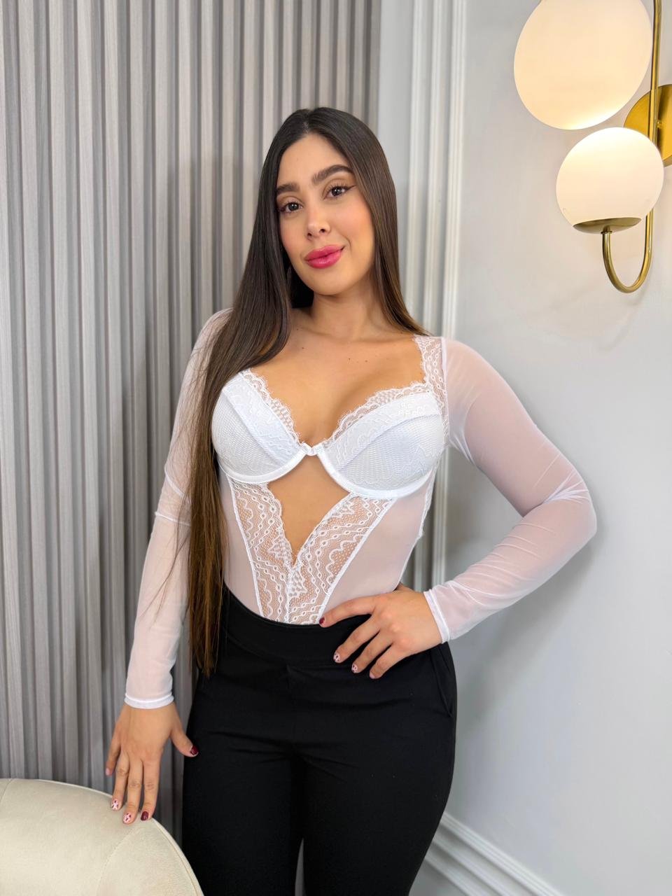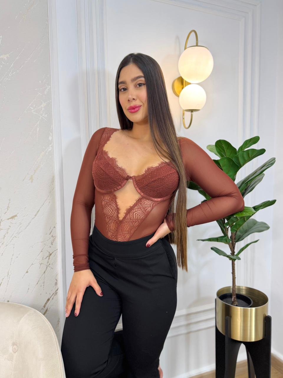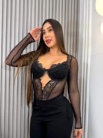Body delicado y seductor disponible en tallas S, M y L. Diseñado sin copa y con varilla para un ajuste que realza tu figura de forma natural. Confeccionado en una combinación irresistible de encaje, mallatex y tul, perfecto para un look elegante, sensual y cómodo a la vez. ✨