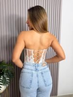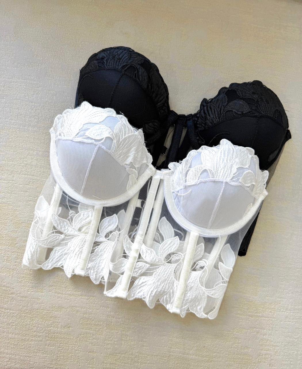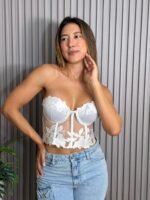 Elegancia que realza tu figura. Corset con copa y varilla, elaborado en delicado encaje bordado. Úsalo con tiras o strapless para un look versátil y sofisticado. Disponible en tallas S-M-L. 💖