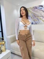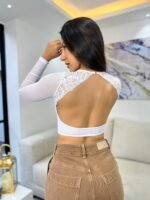 Elegancia y sensualidad en una sola prenda. Disponible en tallas S, M y L, este croptop sin copa pero con varilla ofrece soporte sutil con un diseño sofisticado. Confeccionado en delicado encaje, mallatex y tul color piel, su acabado se realza con herrajes bañados en oro que aportan un toque de lujo. Ideal para lucir segura y con estilo.
