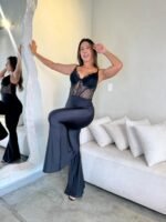 Enterizo femenino disponible en tallas S, M y L, diseñado sin copa y con varilla para realzar la figura. Confeccionado en una delicada combinación de encaje y licra cristal, que aporta sensualidad, ajuste perfecto y un acabado elegante.
